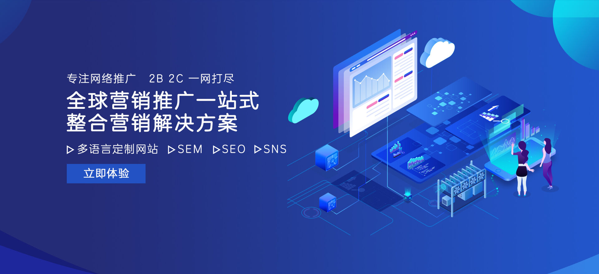我們始終堅持海(hǎi)外(wài)營銷整合推廣,提高(gāo)營銷效率和(hé)效果,提升經營收益。在“互聯網+外(wài)貿”的(de)形勢下(xià),不(bù₩)斷創新突破,為(wèi)中小(xiǎo)型企業(yè)提供專業(yè)化(huà)設計(jì)方案。